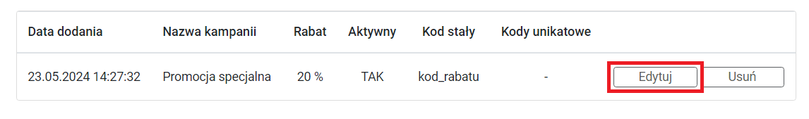 3. Wszystkie ustawienia kampanii można edytować w dowolnym czasie bez konieczności tworzenia jej na nowo. W tym celu należy kliknąć przycisk Edytuj przy danej pozycji.